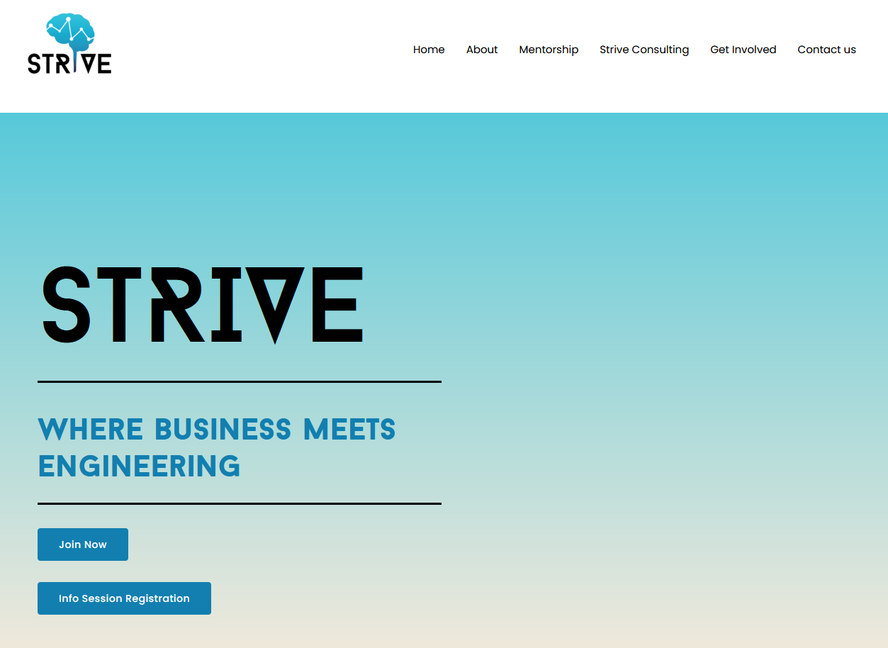 STRIVE is an engineering-entrepreneurship club at the University of British Columbia. During its inception, I was tasked with developing the club's brand identity. I was highly involved in leading the growth of the club - my work included: Logo development, Website development, Advertising and Marketing Material, and Social Media content creation.